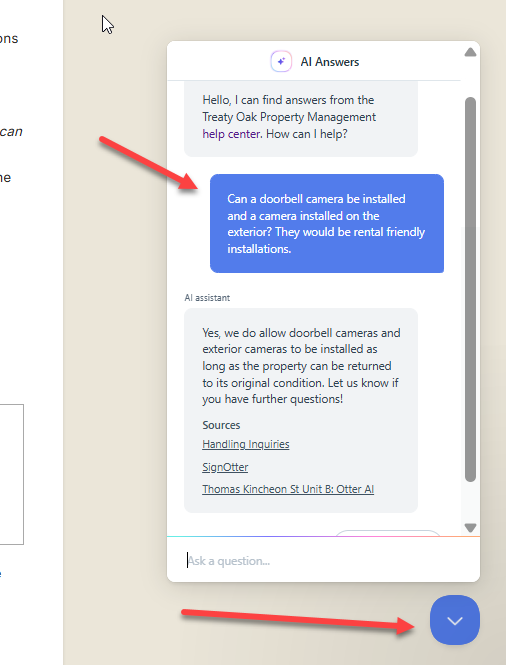 You can then open the chatbot in the lower right corner, and just paste in the agent/applicant question. It should produce the appropriate answer, as shown below.