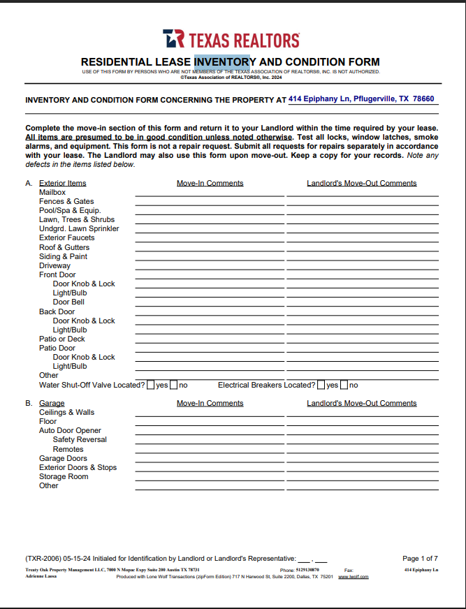 The Inventory & Condition Form (I&C) is a form that we provide to tenants on the day of their move in.