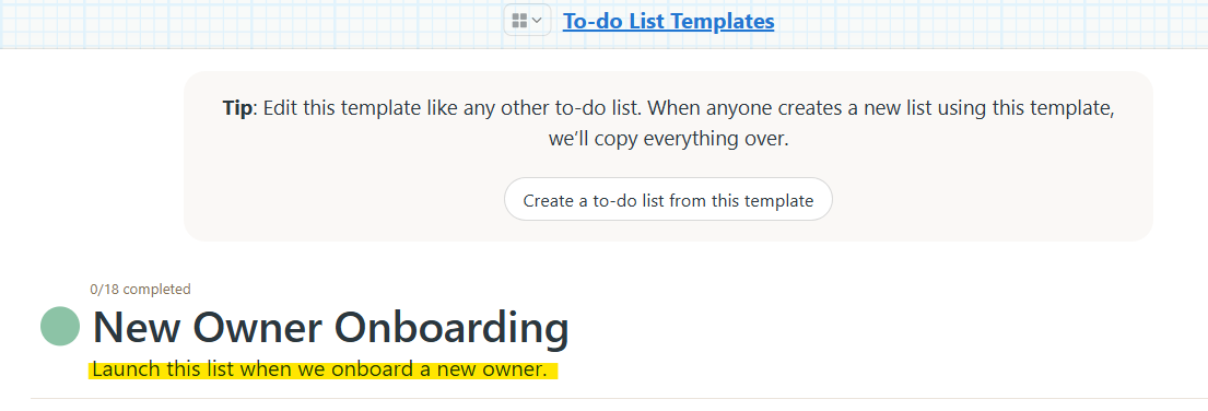 Basecamp and the Task List Templates are tools! If you think the tool could be better, please let us know! The goal is that we continuously update and improve these lists over time. Any feedback you can provide on how the tools can support you better is welcome and appreciated.