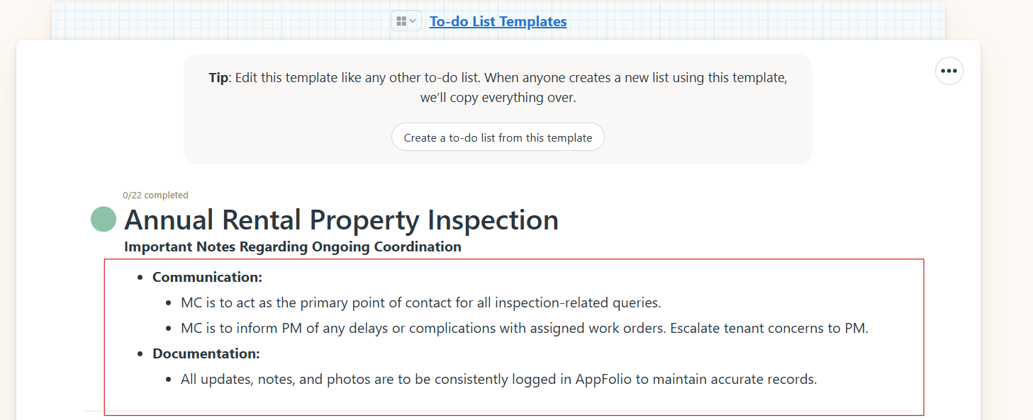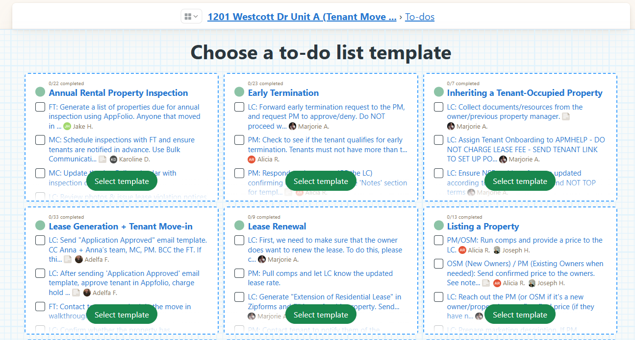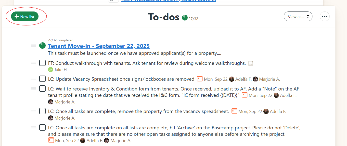 - Keep relaunching task lists within the project rather than creating multiple projects for the same property.
