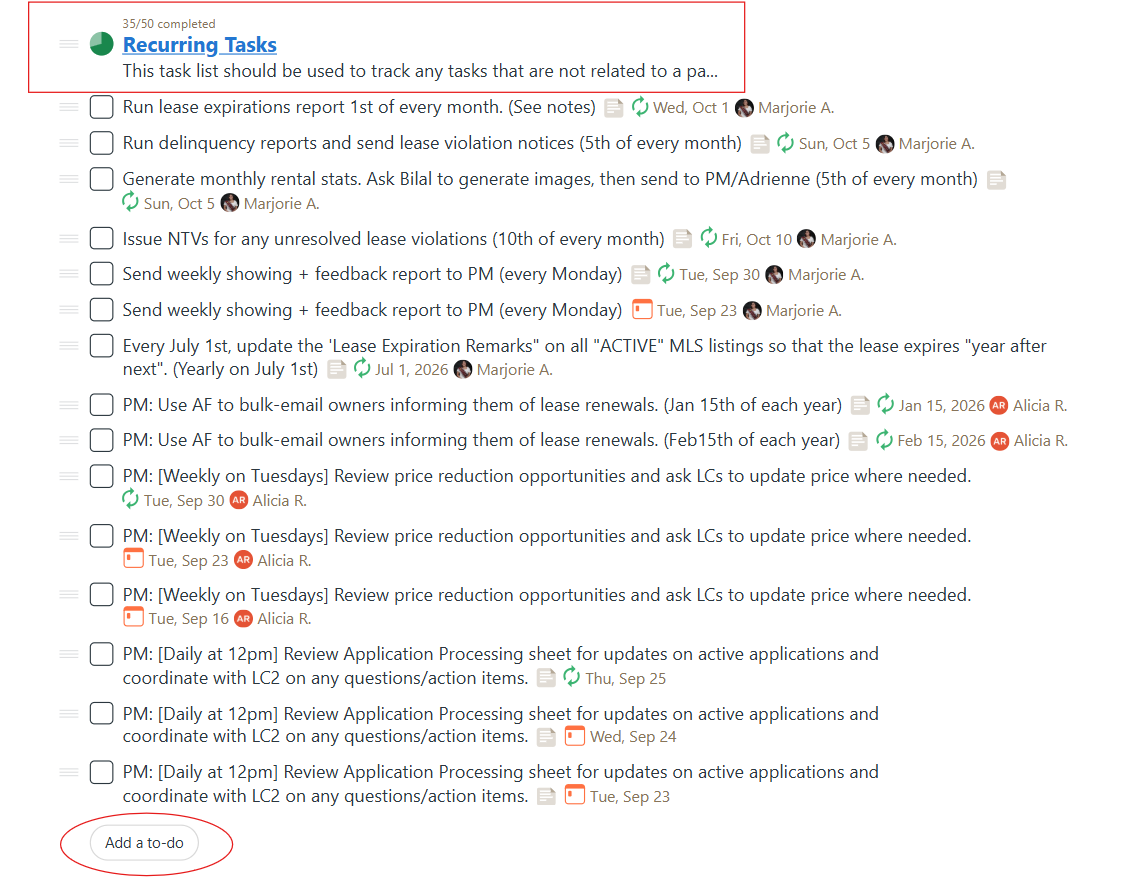 If you have a task that needs to occur over and over, please set up a recurring task. Here's how to do that!