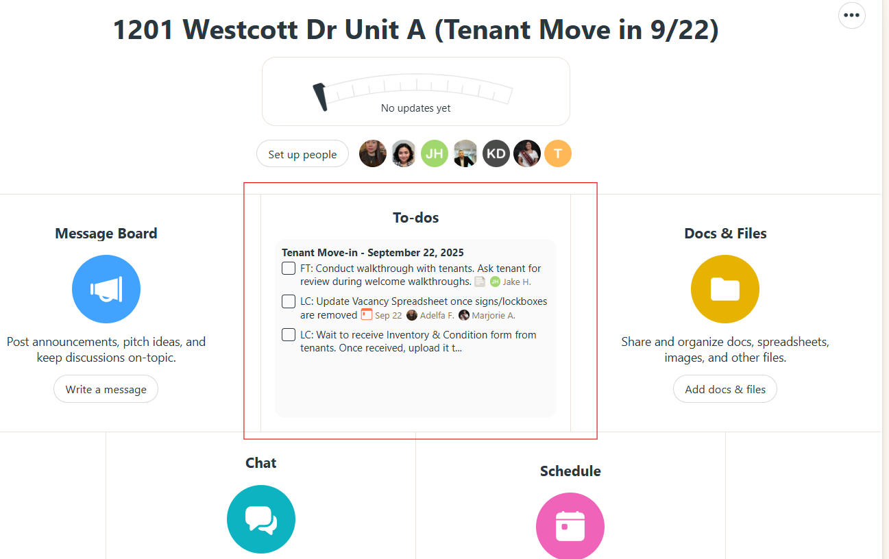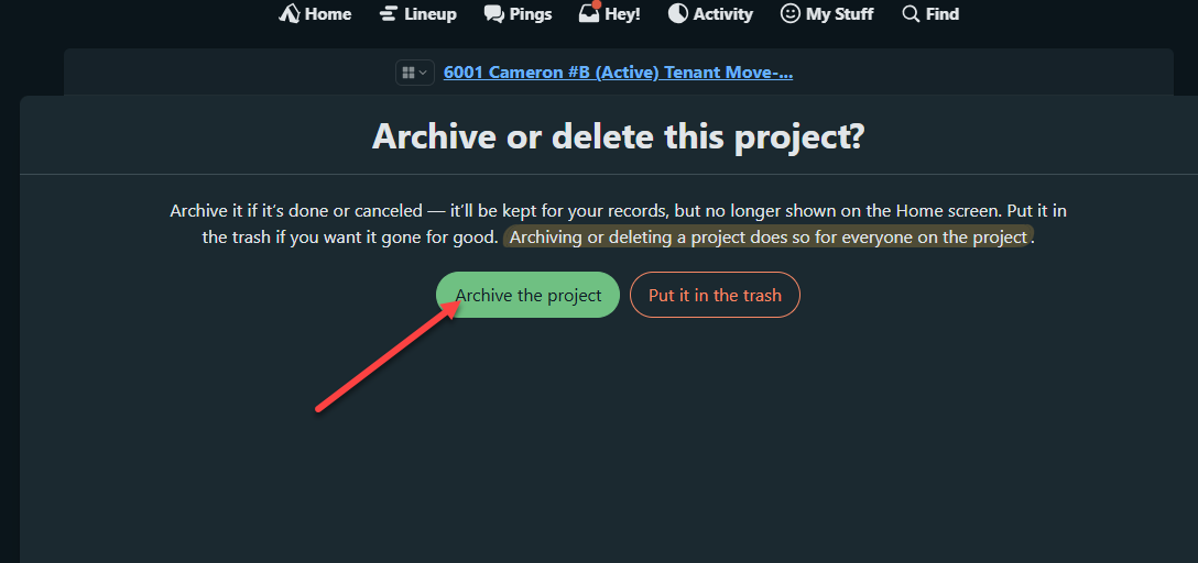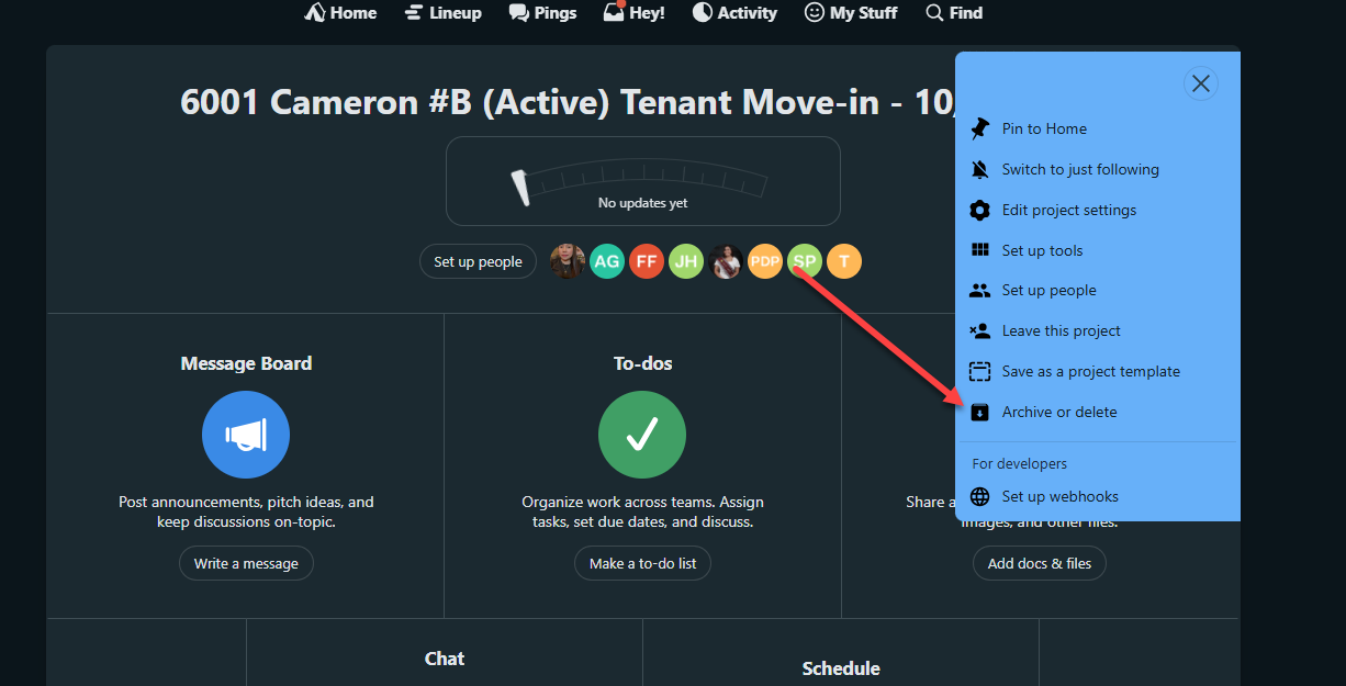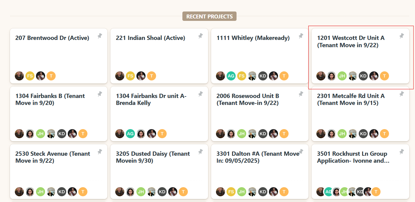 - Once a property is fully leased and tenants have moved in, archive the project to remove it from our active workload.