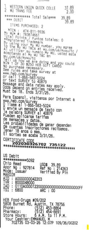 Pay at HEB: Bring the first page of the bill to HEB with filled out "check free pay" slips and a TRUST card. Gather all receipts and write the property address at the top of the receipt.